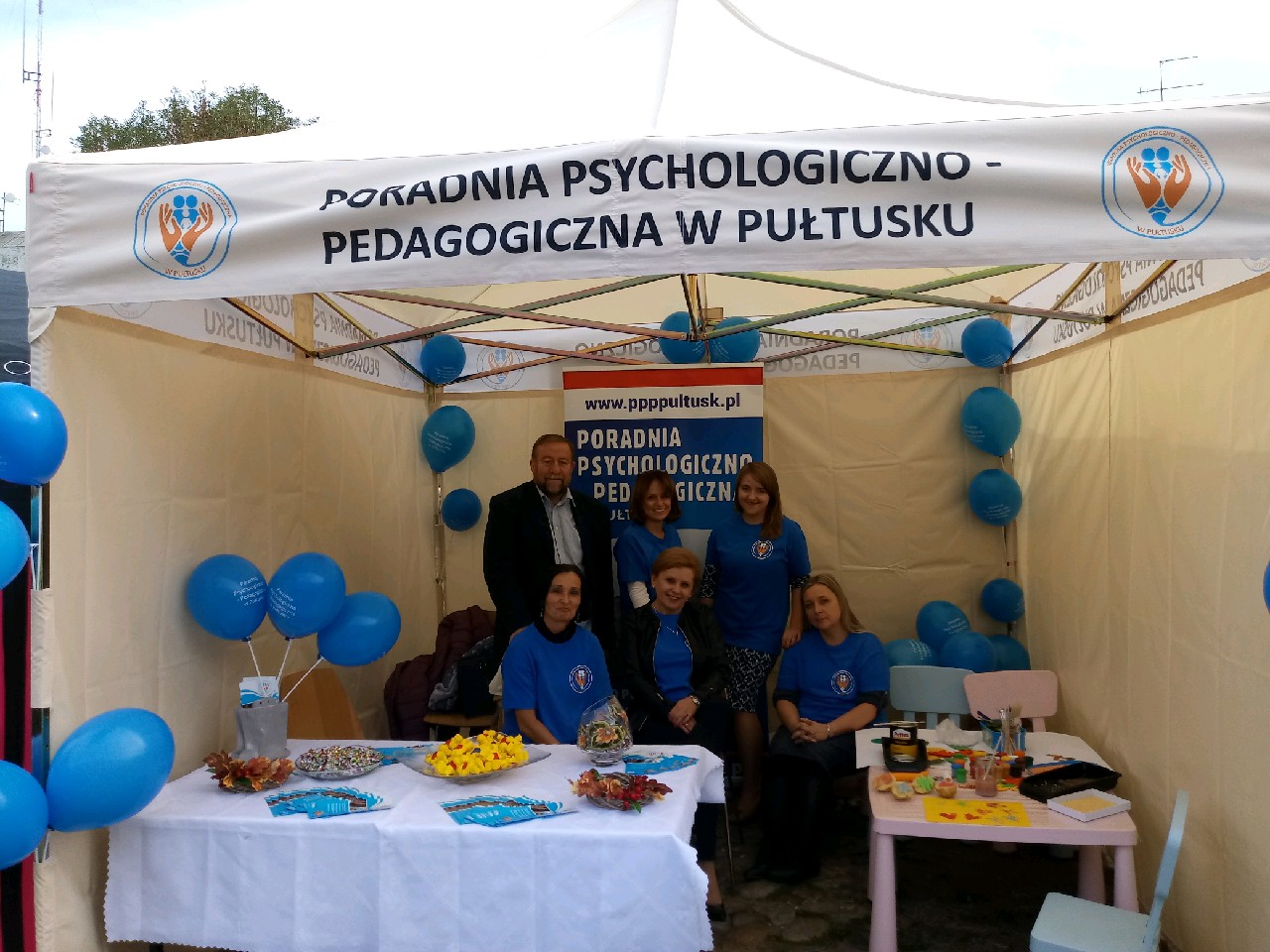 Doroczne Dni Patrona Miasta Pułtuska odbyły się w dniach 20-24 września 2018 r. W sobotę, 22 września na Rynku zaprezentowały się pułtuskie zakłady pracy, przedszkola, szkoły, różne instytucje oraz stowarzyszenia. Ne zabrakło wśród nich również Poradni Psychologiczno-Pedagogicznej w Pułtusku. W ramach promocji jednostki oraz świadczonych przez nią usług pracownicy wraz z dyrektorem udzielali bezpłatnych porad i udostępniali ulotki informacyjne z ofertą pomocową Poradni. Nie zapomnieliśmy także o atrakcjach dla najmłodszych. Maluchy mogły się z nami bawić masą solną, materiałami sypkimi oraz plastycznymi. Każdy, kto odwiedził nasze stoisko otrzymywał pamiątkowy breloczek, balonik i coś słodkiego.