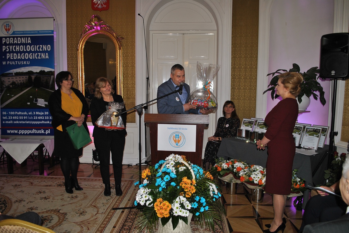 25 listopada Poradnia Psychologiczno-Pedagogiczna w Pułtusku obchodziła 50-lecie swojego istnienia. Z tej też okazji zorganizowane zostało spotkanie Jubileuszowe, w którym uczestniczyli znamienici Goście: pani Beata Jóźwiak – Wicestarosta Pułtuski i współorganizator uroczystości, pani Anna Maliszewska – Starszy Wizytator Kuratorium Oświaty w Warszawie Delegatura w Ciechanowie, pan Tadeusz Nalewajk – Przewodniczący Rady Powiatu wraz z Radnymi Powiatowymi, Ks. kanonik Wiesław Kosek – Proboszcz Parafii św. Mateusza w Pułtusku, pani Renata Krzyżewska – Skarbnik Powiatu Pułtuskiego, pani Patrycja Kaźmierczak – Sekretarz Miasta Pułtusk, Wójtowie gmin z terenu Powiatu Pułtuskiego, pani Maria Dąbek – Djakon – Prezes Sądu Rejonowego w Pułtusku, Pan Michał Żukowski- Kierownik Zespołu Kuratorskiej Służby Sądowej przy Sądzie Rejonowym w Pułtusku, pan Jarosław Olszewski- Komendant Powiatowy Policji w Pułtusku, pani Anna Frejlich – Dyrektor Powiatowego Centrum Pomocy Rodzinie, pan Janusz Borzyński – Dyrektor Cechu Rzemiosł Różnych i Przedsiębiorczości, pan Witold Chrzanowski- Dyrektor Powiatowego Urzędu Pracy, pani Izabela Kosiorek – Kierownik Biblioteki Pedagogicznej w Ciechanowie – Filia w Pułtusku.